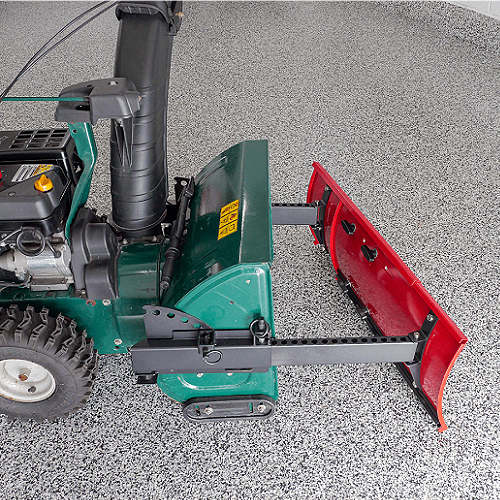 Once the brackets are installed, the Throwerblade™ simply slides on and off your snow blower and can be stored when not in use.